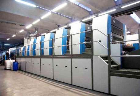 papers and specialty inks, such as metallic or fluorescent inks in the offset process.